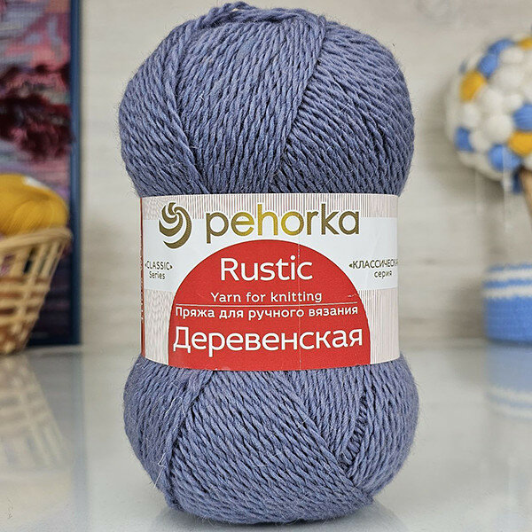 Пряжа Пехорка Деревенская 255 джинсовый (100г/250м, упаковка 5 мотков)