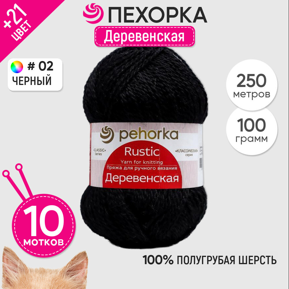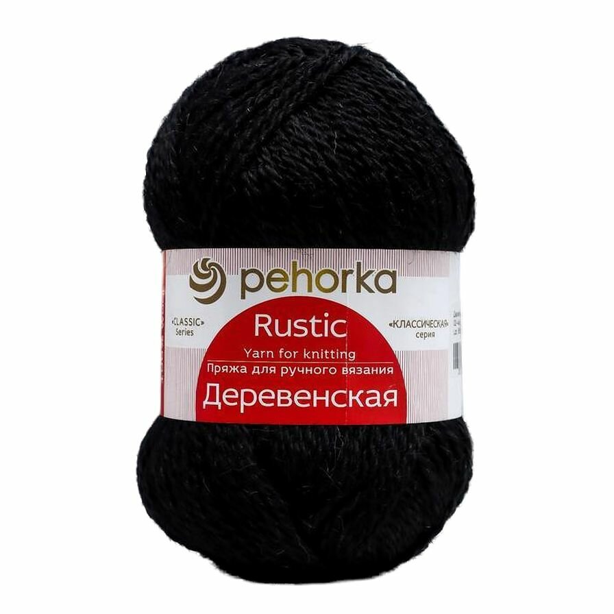 Пряжа для вязания Пехорка Деревенская (02 - черный) шерсть 100% 10 мотков 100 г 250 м