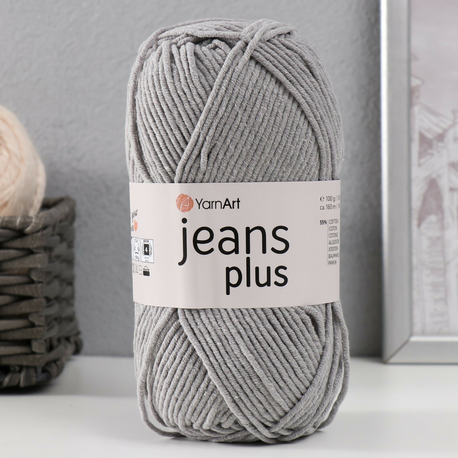 Пряжа YarnArt Jeans PLUS светло-серый (49), 55%хлопок/45%акрил, 160м, 100г, 1шт