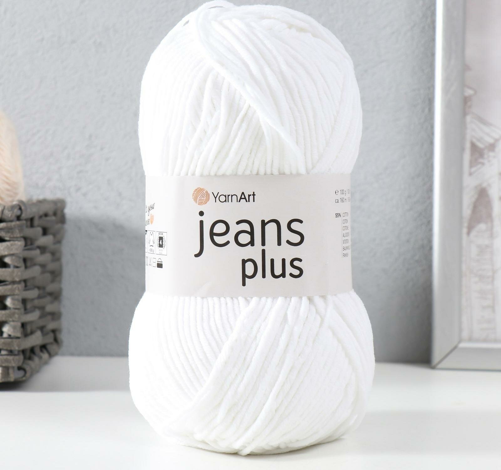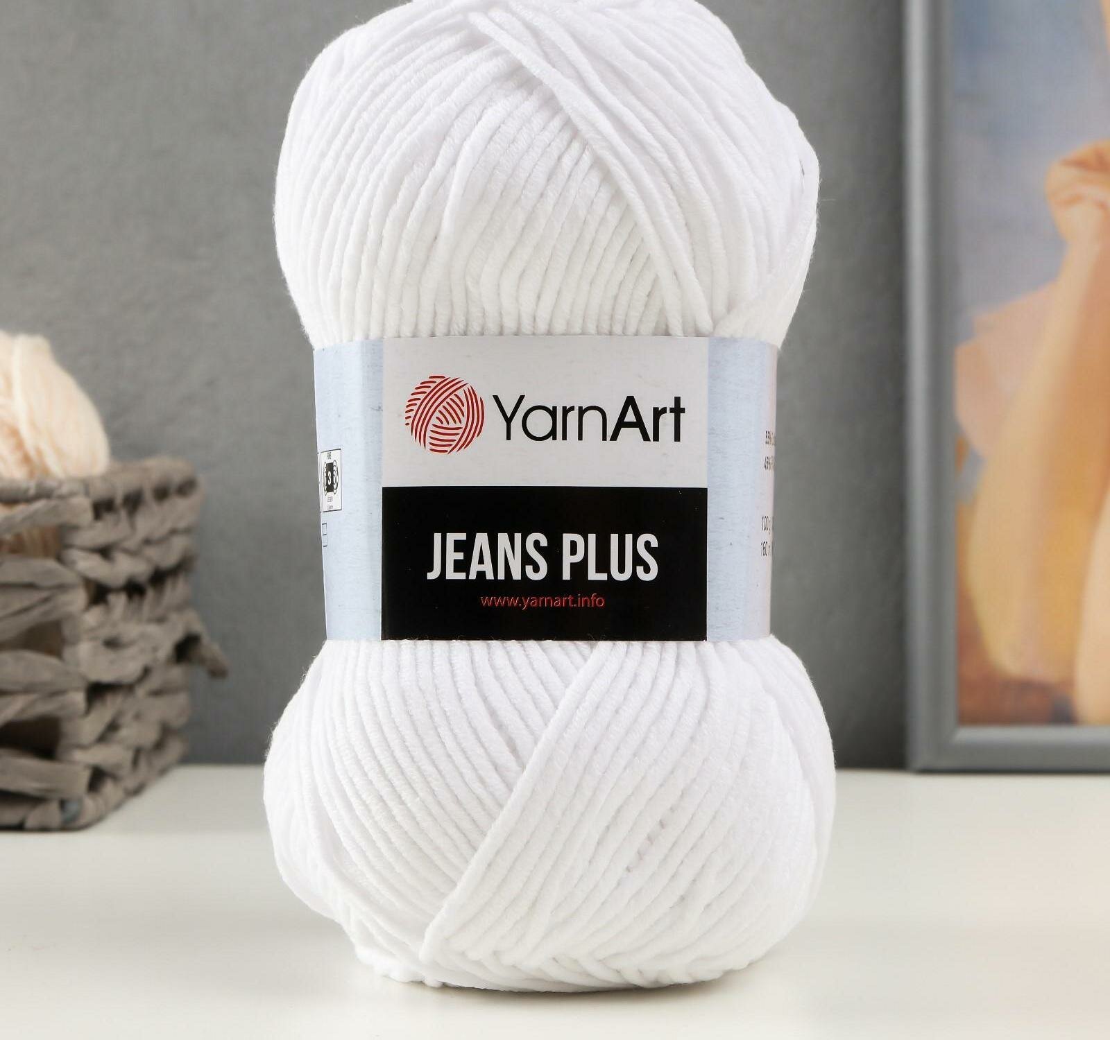 Пряжа для вязания YarnArt 'Jeans Plus' 100г, 160м (55% хлопок, 45% полиакрил) (62 белоснежный), 5 мотков