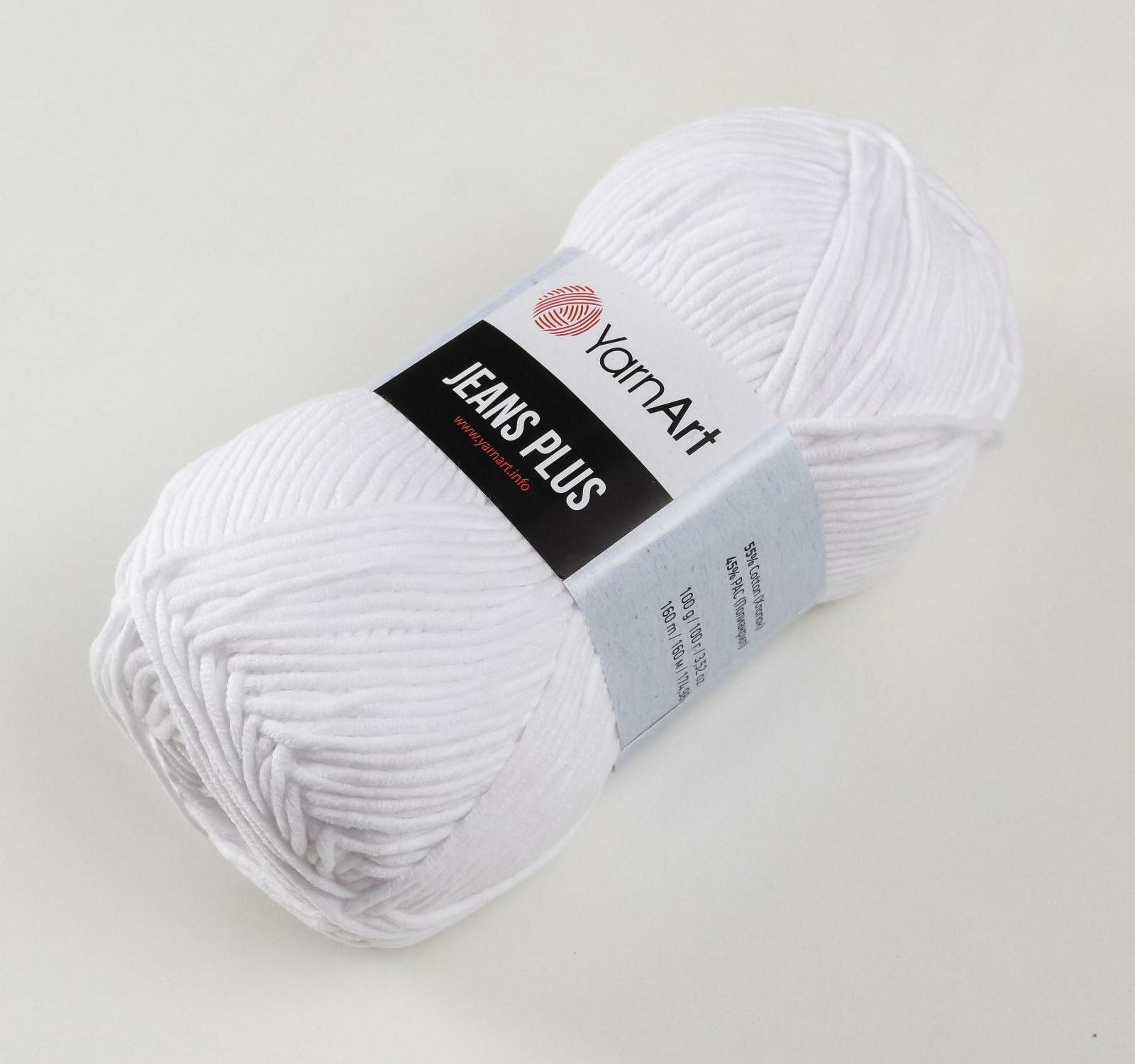 Пряжа для вязания YarnArt Jeans Plus, цвет 62 ультрабелый, моток 100г, 160м, 5 мотков