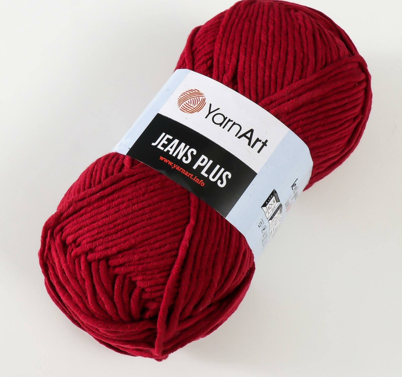 Пряжа для вязания YarnArt Jeans Plus, цвет 51 темно-красный, моток 100г, 160м, 5 мотков