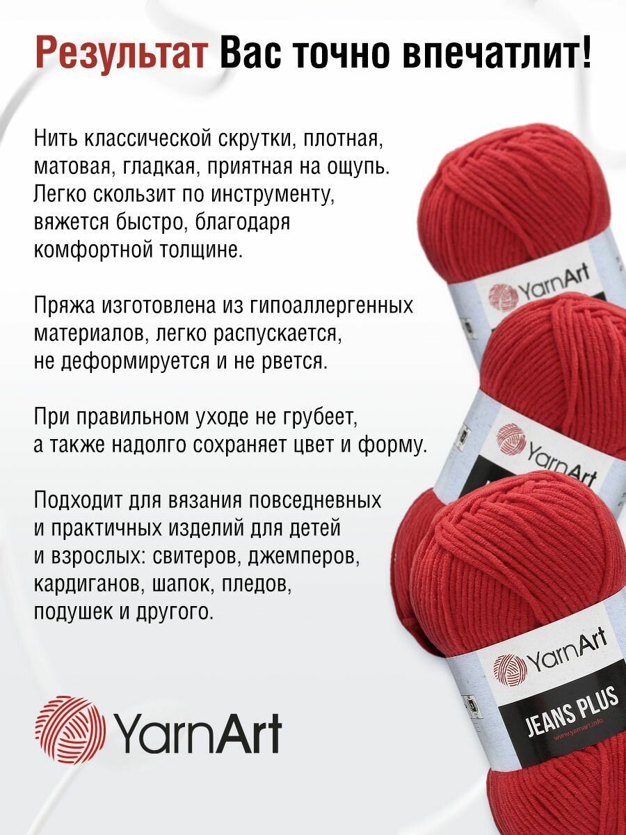 Пряжа YarnArt Jeans Plus - 1 шт (ЯрнАрт Джинс Плюс)100г, 160м, цвет 64 ярко красный, Нитки для вязания, 55% хлопок 45% полиакрил