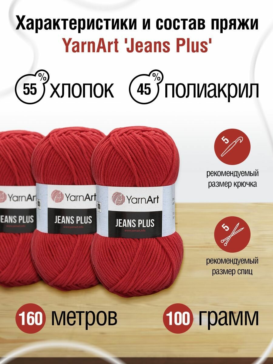 Купить Пряжа для вязания YarnArt 'Jeans Plus', 100г, 160м (55% хлопок, 45% полиакрил) (90 красный), 5 мотков