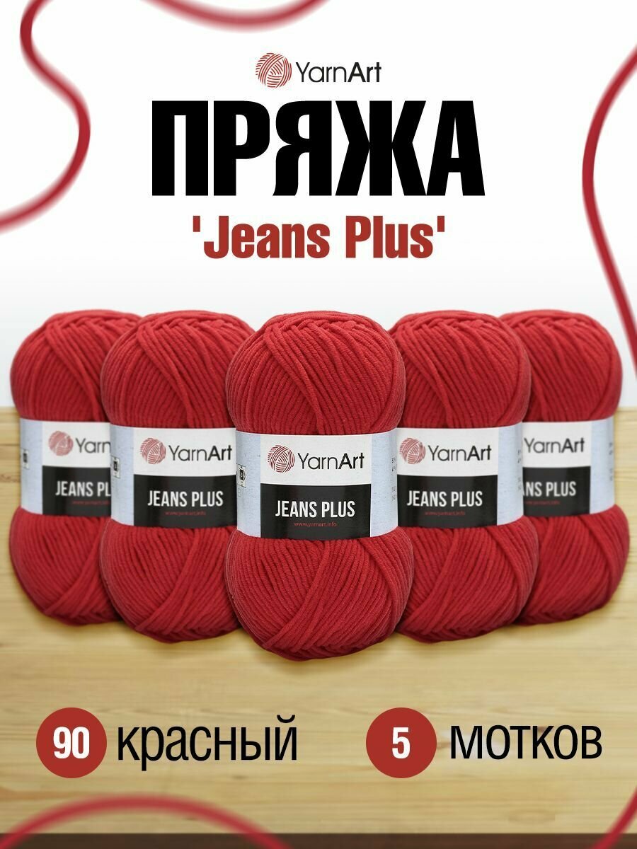 Пряжа YarnArt Jeans PLUS красный (90), 55%хлопок/45%акрил, 160м, 100г, 5шт