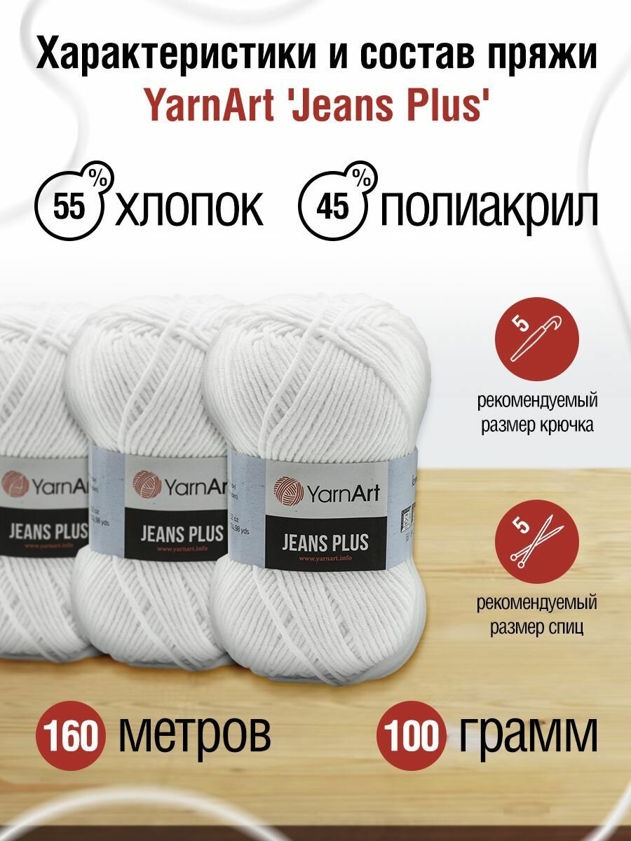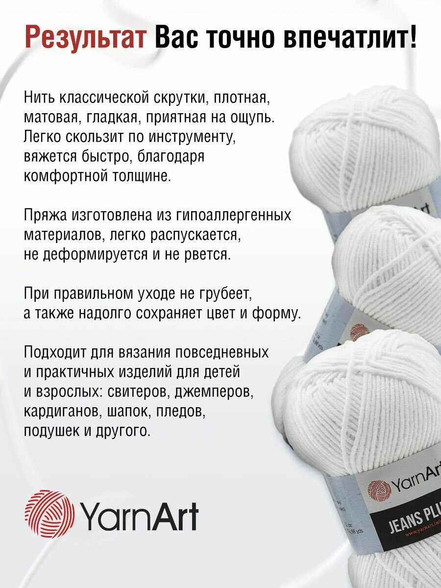 Пряжа для вязания YarnArt 'Jeans Plus' 100г, 160м (55% хлопок, 45% полиакрил) (62 белоснежный), 5 мотков