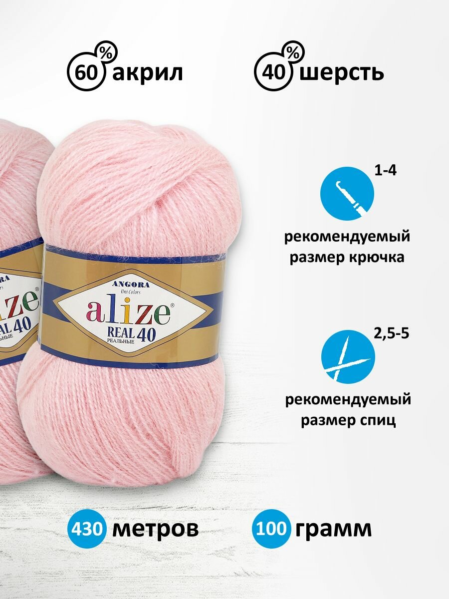 СохранитьПряжа для вязания Alize Angora Real 40 363 светло-розовый, 100 г, 480 м, 5 штук интересное: