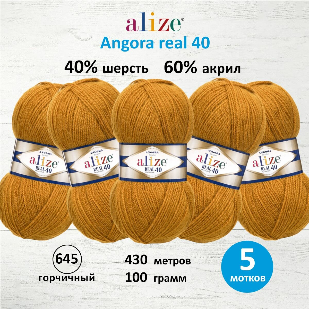 Купить Пряжа Alize Angora Real 40 горчичный (645), 60%акрил/40%шерсть, 430м, 100г, 5шт