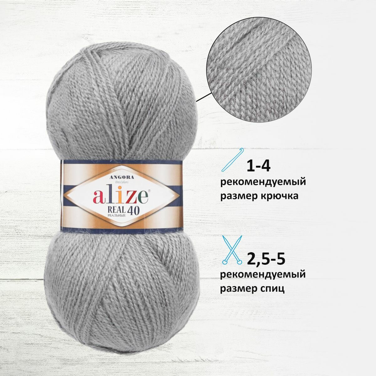 Пряжа ALIZE ANGORA REAL 40, серый - 21, 40% шерсть, 60% акрил, 5 мотков, 100 г, 430 м.