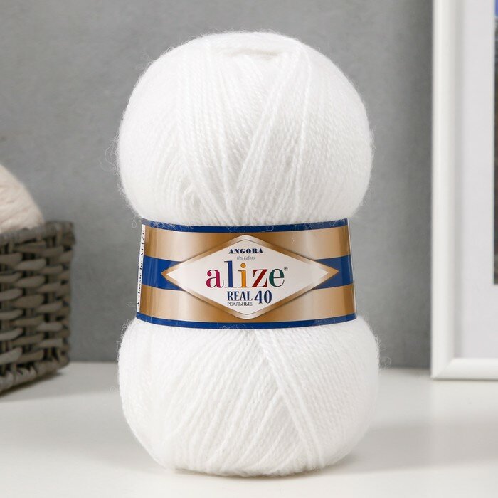 Купить Пряжа Alize Angora Real 40 белый (55), 60%акрил/40%шерсть, 430м, 100г, 1шт