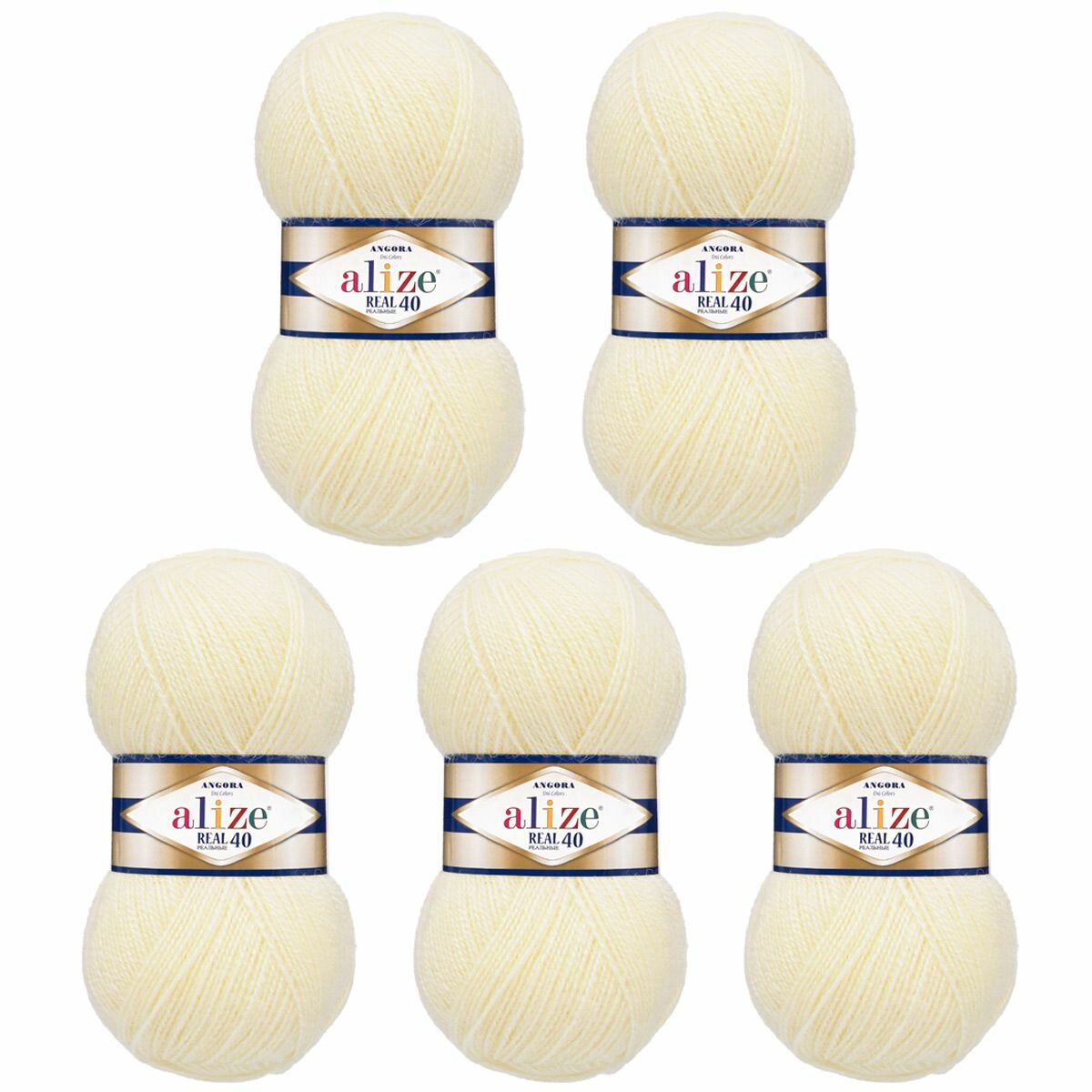 Купить Пряжа Alize Angora Real 40 кремовый (1), 60%акрил/40%шерсть, 430м, 100г, 5шт