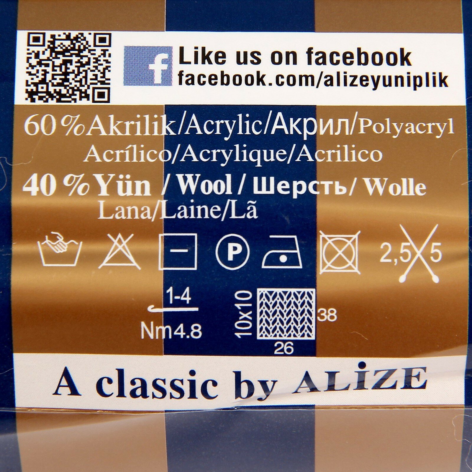 Пряжа ALIZE "Angora real 40", 100 гр 430 м, 40% шерсть, 60% акрил, 58 темно-синий, 5 шт