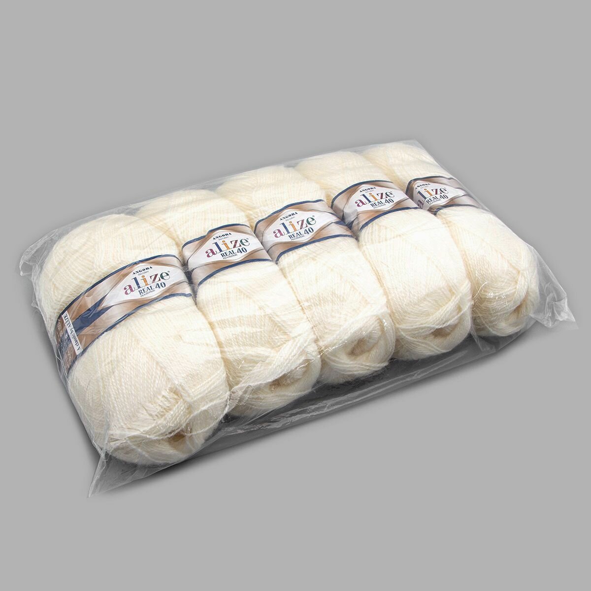Пряжа ALIZE ANGORA REAL 40, кремовый - 01, 40% шерсть, 60% акрил, 5 мотков, 100 г, 430 м.