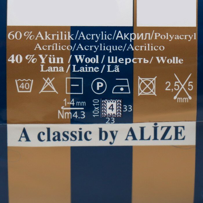 Пряжа ALIZE "Angora real 40", 100 гр 430 м, 40% шерсть, 60% акрил, 58 темно-синий, 5 шт