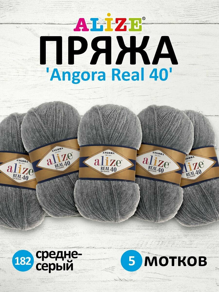 Купить Пряжа для вязания ALIZE 'Angora real 40', 100г, 430м (40% шерсть, 60% акрил) (182 средне-серый меланж), 5 мотков