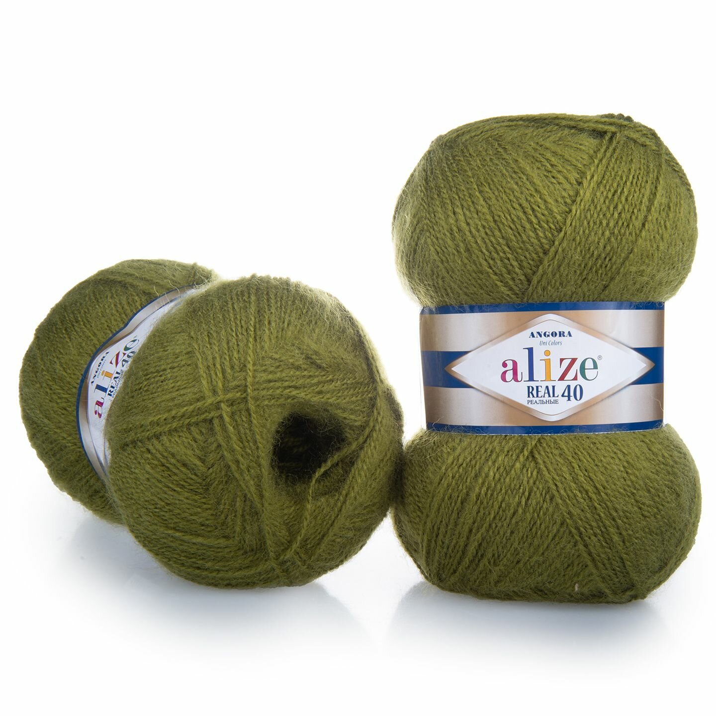Пряжа ALIZE ANGORA REAL 40, оливковый - 758, 40% шерсть, 60% акрил, 5 мотков, 100 г, 430 м.