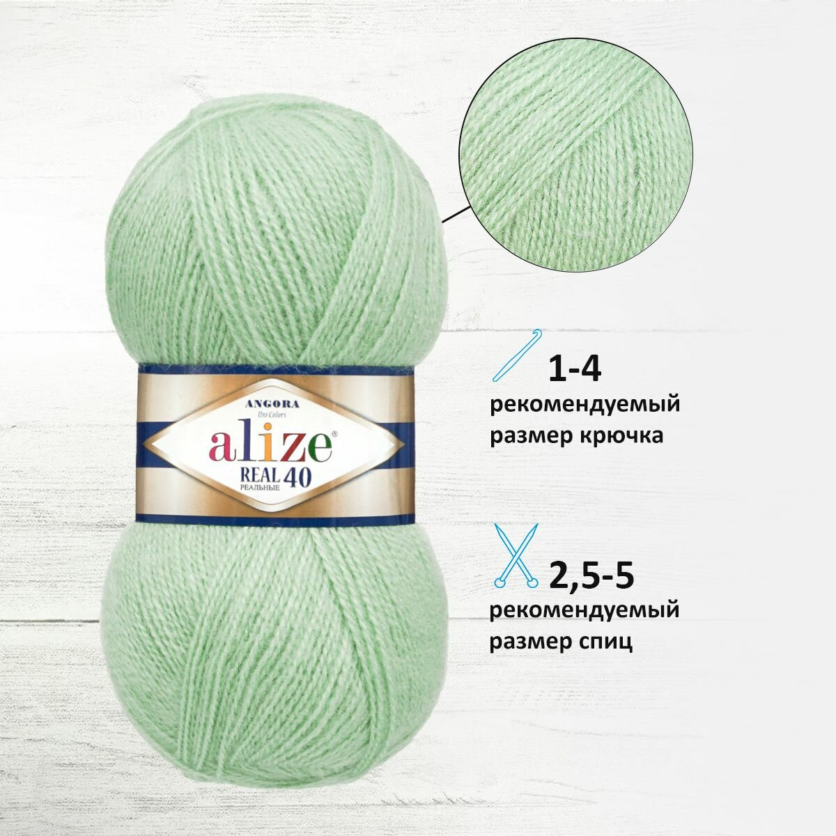Пряжа ALIZE ANGORA REAL 40, св. мята - 842, 40% шерсть, 60% акрил, 5 мотков, 100 г, 430 м.