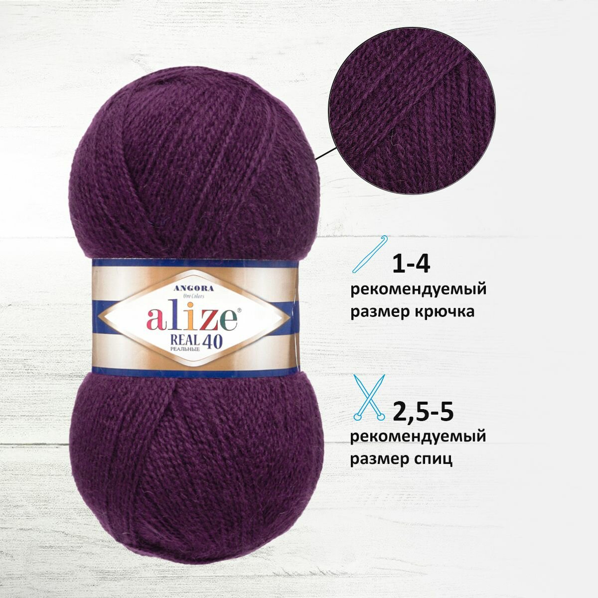 Пряжа для вязания ALIZE Angora Real 40 Ализе Ангора Реал: 111 (сливовый), 5 шт 430 м 100 г, 40% шерсть 60% акрил
