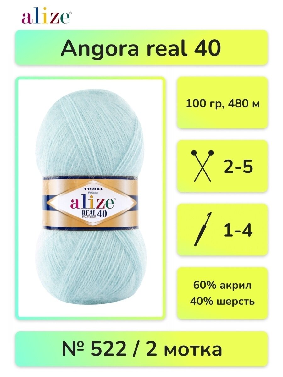 Пряжа Alize Angora Real 40 талая вода (52), 60%акрил/40%шерсть, 430м, 100г, 2шт