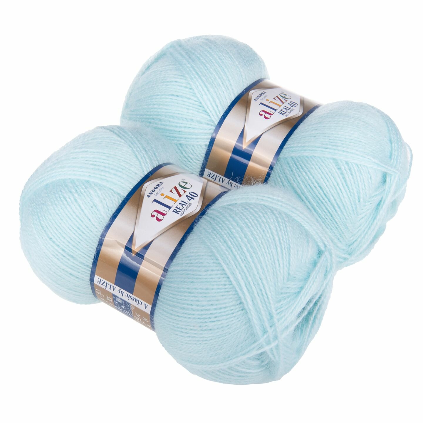 Пряжа Alize Angora Real 40 (Ангора Реал 40) - 3 мотка цвет 40 голубой 40% шерсть, 60% акрил 100г 480м