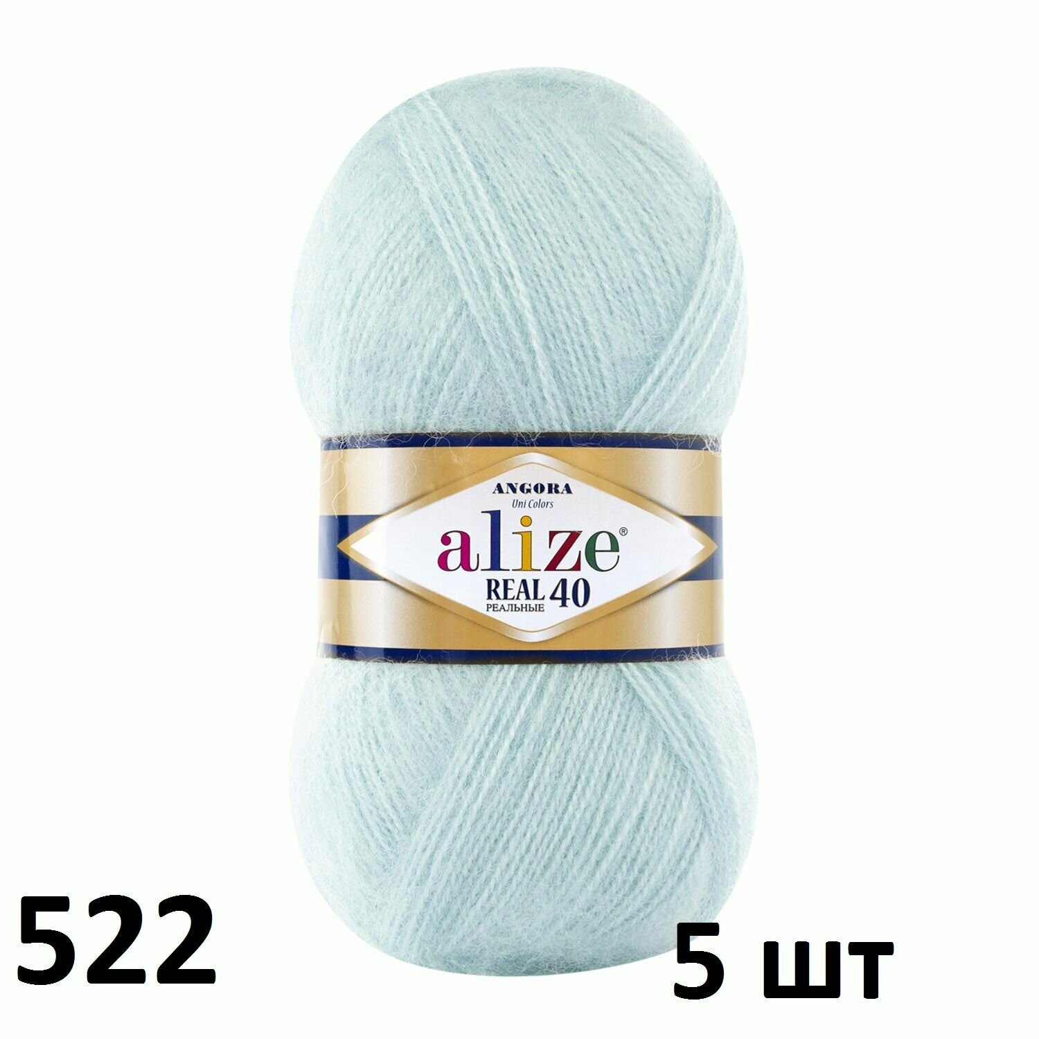 Пряжа Alize Angora Real 40 (Ангора Реал 40) - 5 мотков цвет 522 мята 40% шерсть, 60% акрил 100г 480м