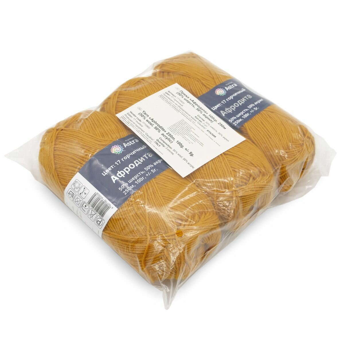 Пряжа Astra Premium "Афродита", 100 гр 250 м, 50% шерсть, 50% акрил, 19 медовый, 3 шт