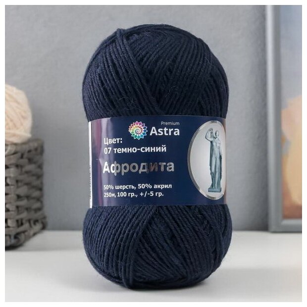 Купить Пряжа для вязания Astra Premium 'Афродита', 100г, 250м (50% шерсть, 50% акрил) (07 темно-синий), 3 мотка