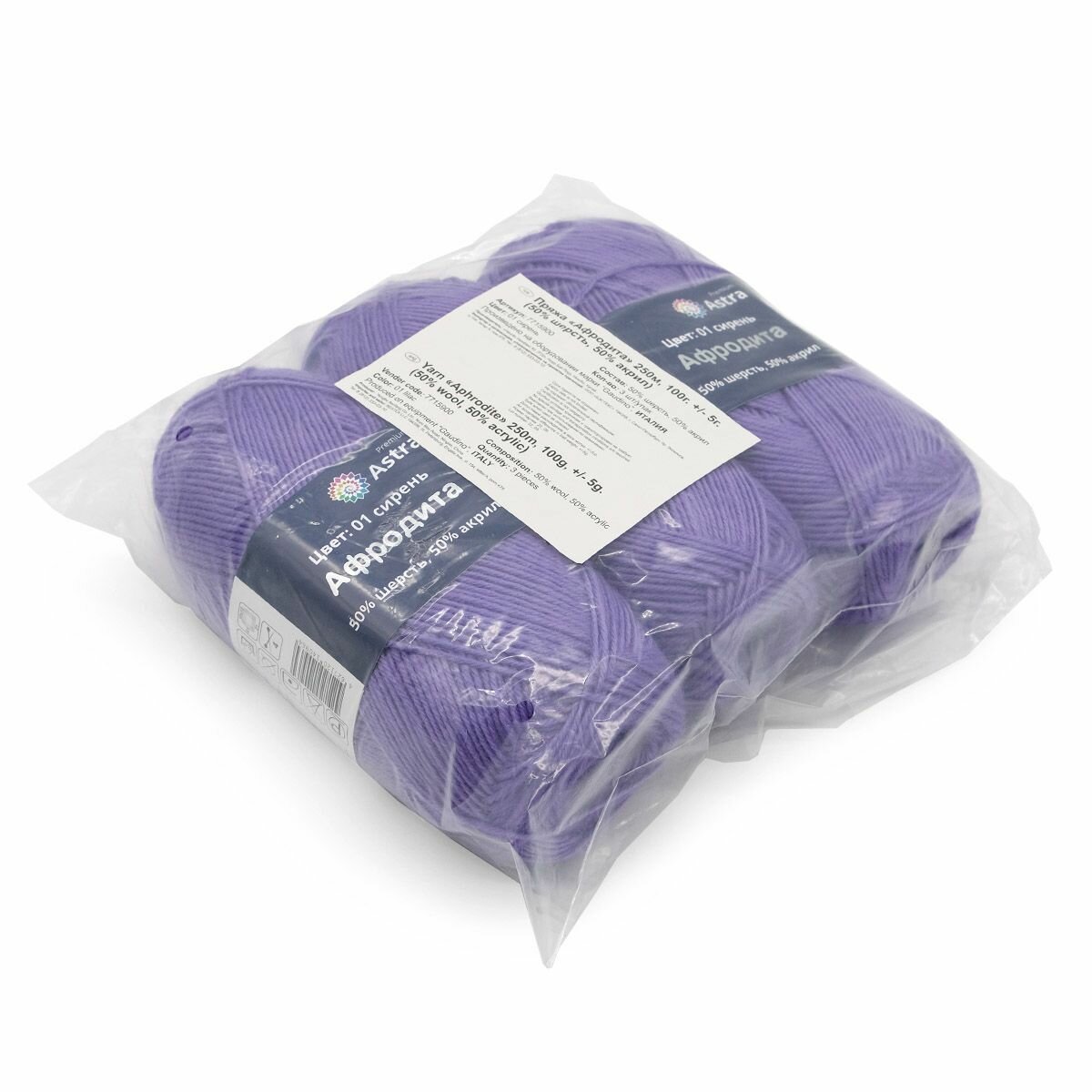 Пряжа для вязания Astra Premium 'Афродита' 100г, 250м (50% шерсть, 50% акрил) (01 сирень), 3 мотка