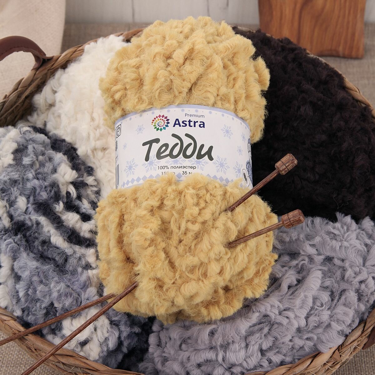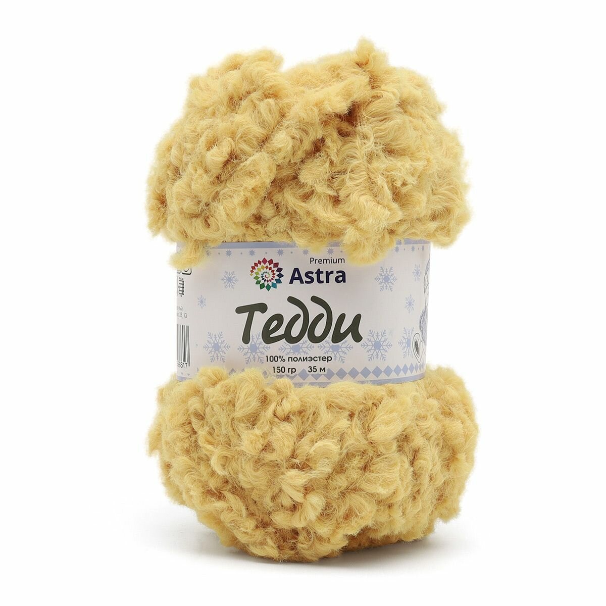 СохранитьПряжа для вязания Astra Premium 'Тедди' букле, 150г, 35м (100% полиэстер) (05 желтый) интересное: