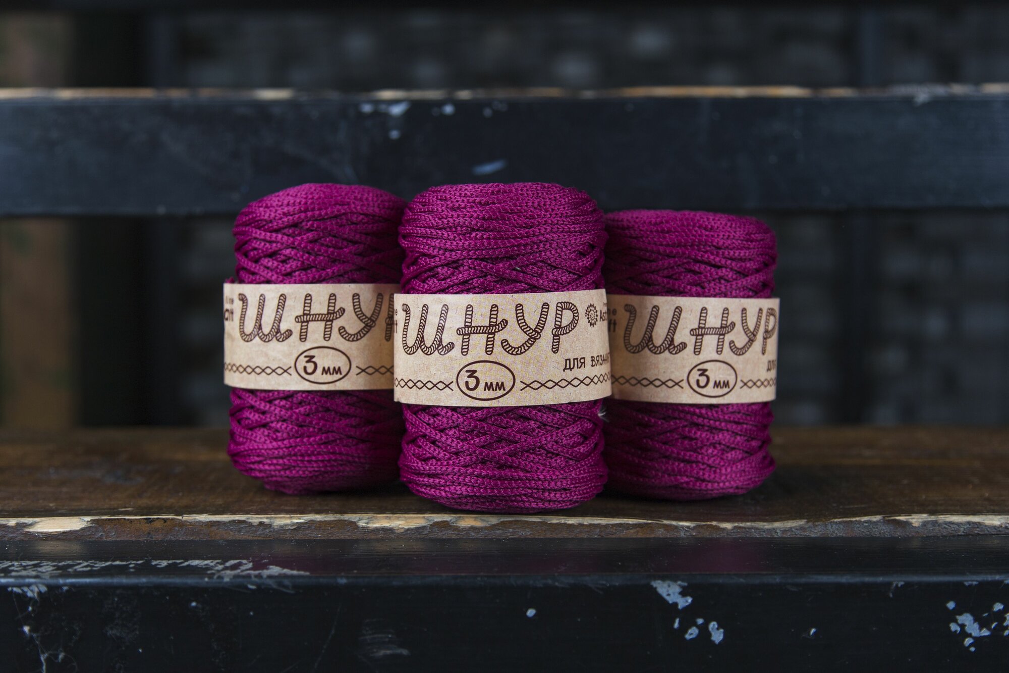 Пряжа для вязания Astra Premium 'Шнур для вязания 3 мм' 200г, 100м (100% полиэфир) (190 бордо), 3 мотка