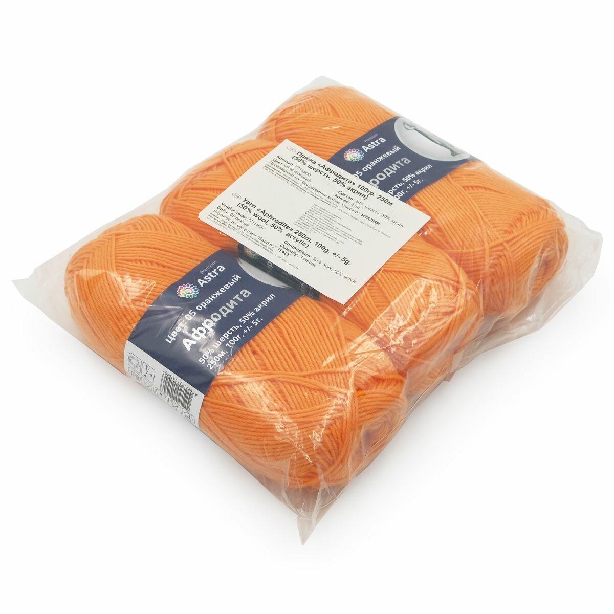 Пряжа для вязания Astra Premium 'Афродита' 100г, 250м (50% шерсть, 50% акрил) (05 оранжевый), 3 мотка