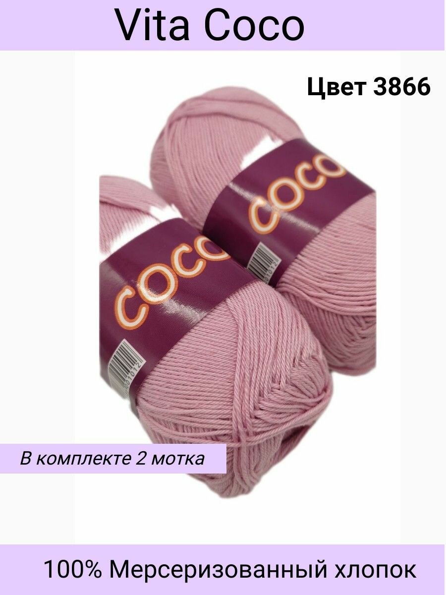 СохранитьПряжа для вязания VITA COCO (Коко), цвет: 3866 чайная роза / 100% мерсеризованный хлопок / 50 г, 240 м/2 мотка интересное: