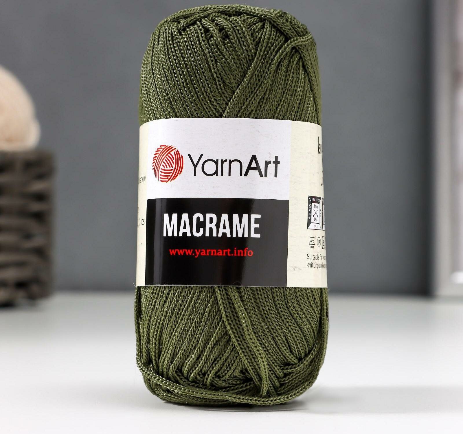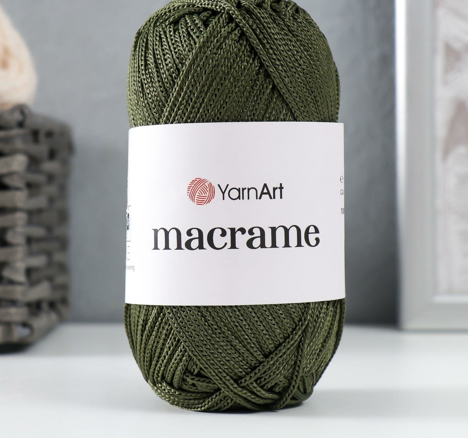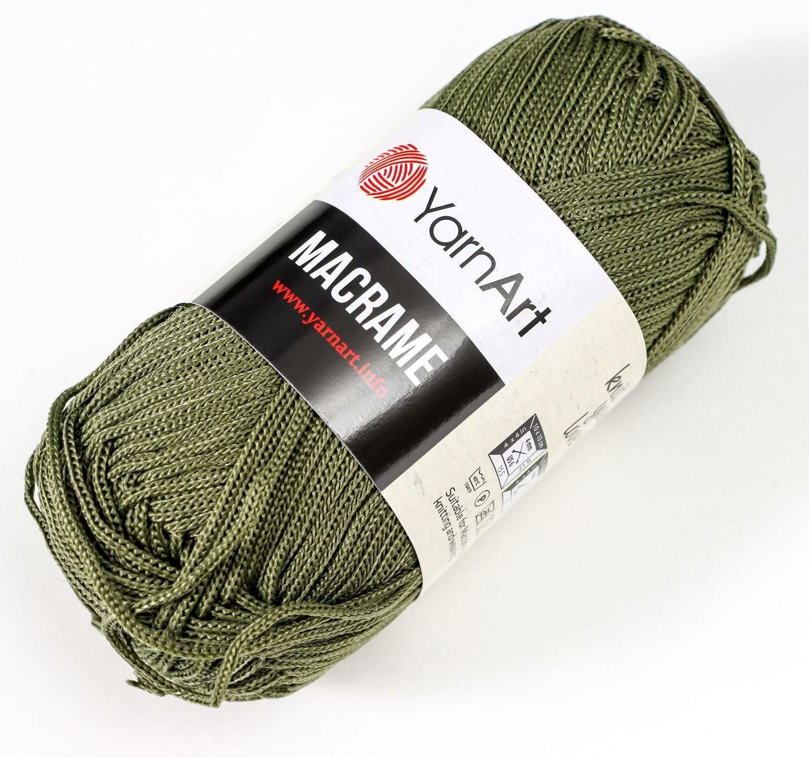 Пряжа YarnArt Macrame Хаки (164) 1 моток 90 г/130 м (100% полиэстер) ярнарт шнур для плетения макраме
