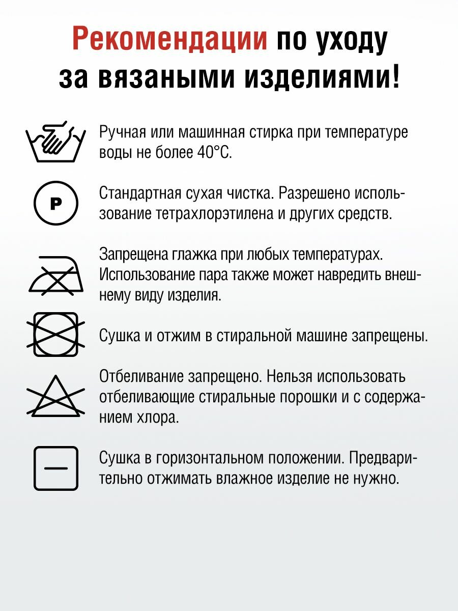 | Плотность вязания для образца 10х10 см | вязание спицами: 21 ряд х 15 петель, вязание крючком: 16 рядов х 12 петель |