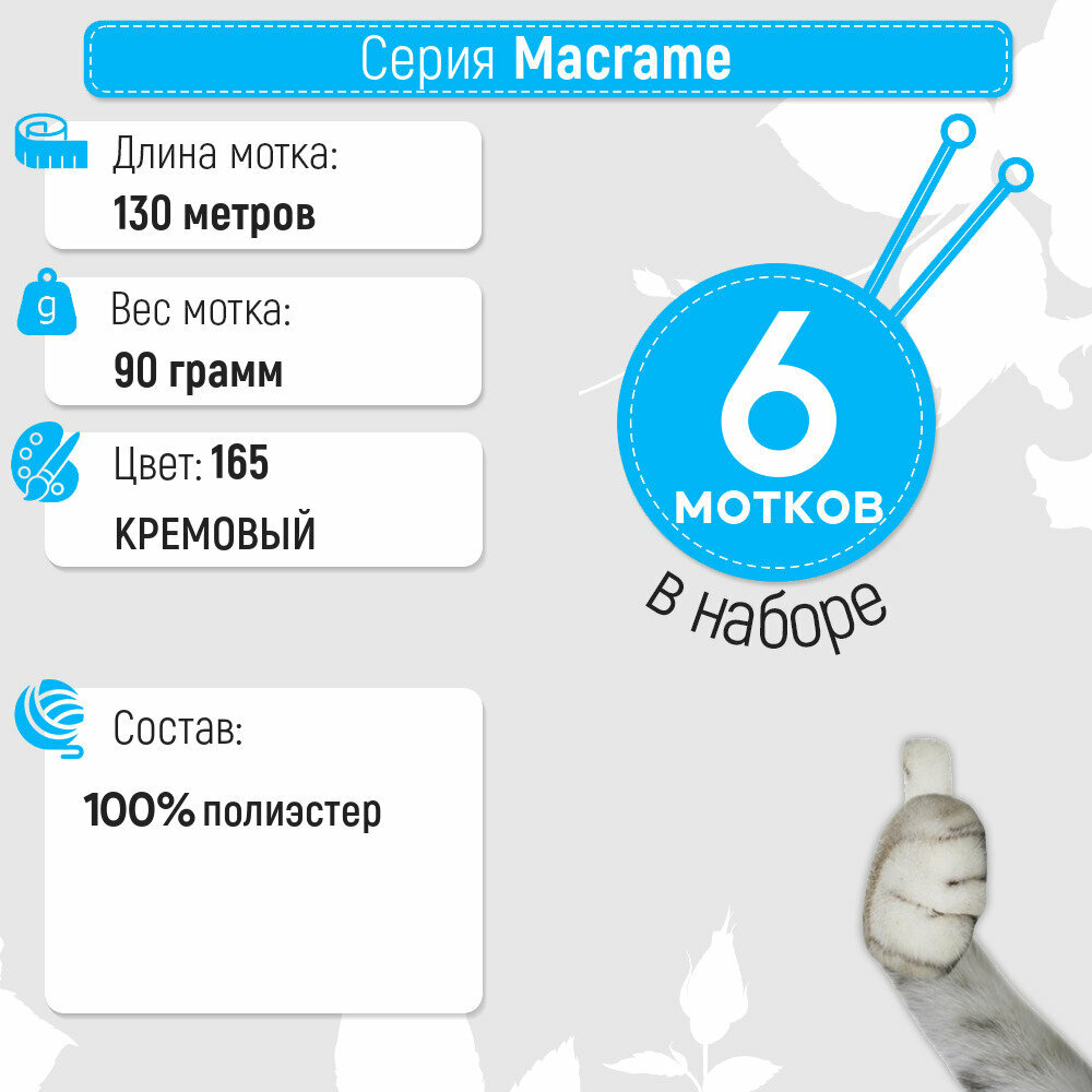 Купить Пряжа для вязания YarnArt 'Macrame' 90гр 130м (100% полиэстер) (165 кремовый), 6 мотков