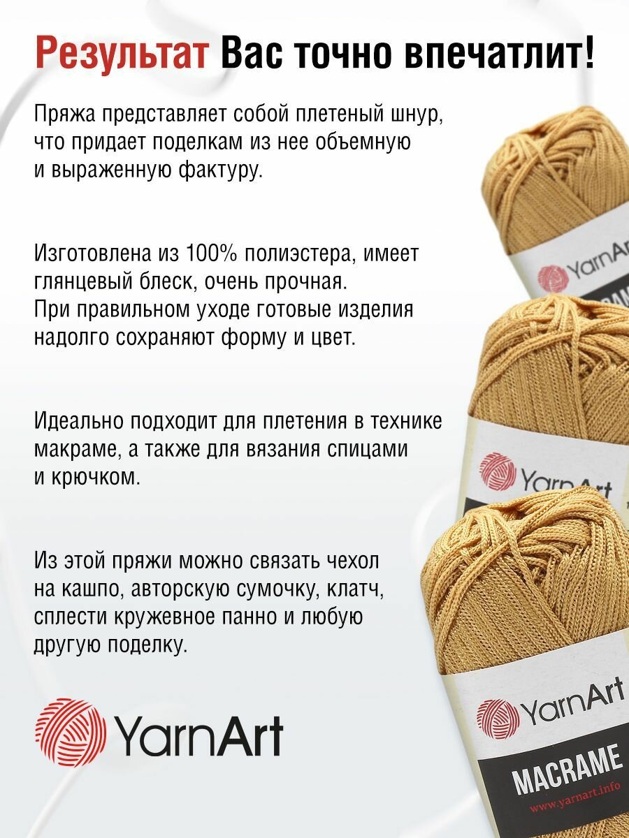 Пряжа YarnArt Macrame Золотистый беж (131) 1 моток 90 г/130 м (100% полиэстер) ярнарт шнур для плетения макраме