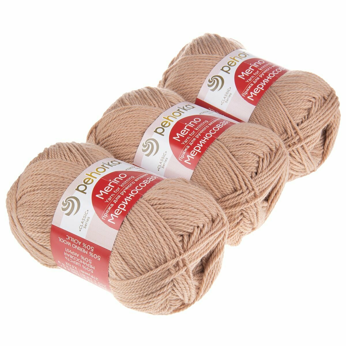 Пряжа для вязания Пехорка 'Мериносовая' 100г, 200м (50% шерсть, 50% акрил) (124 песочный), 10 мотков