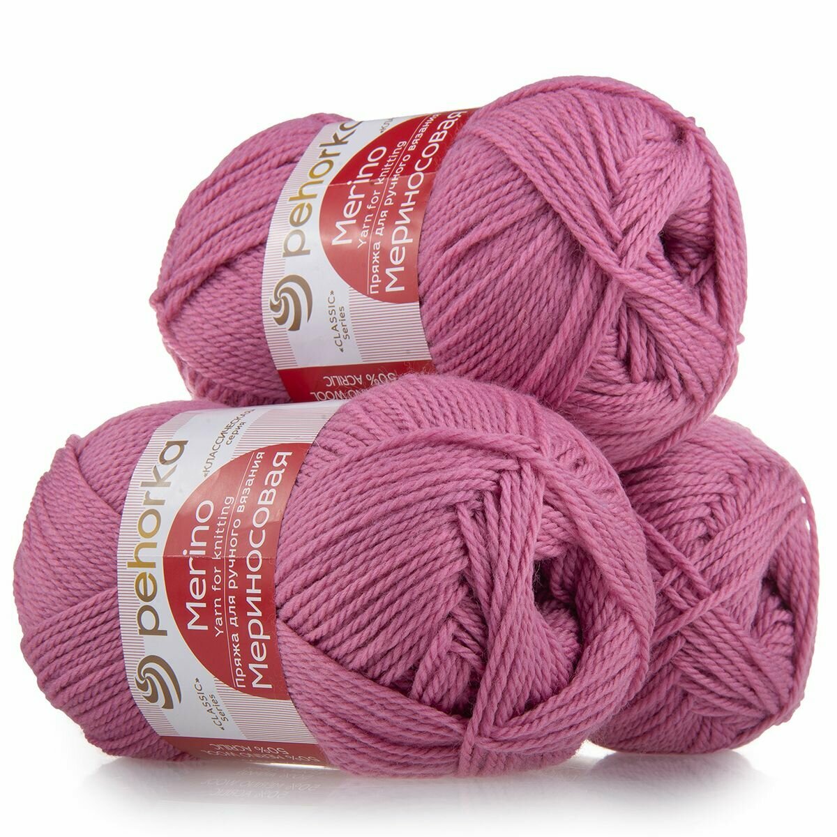 Пряжа Мериносовая (Пехорка), Орхидея - 24, 50% мериносовая шерсть, 50% акрил, 10 мотков, 100 г, 200 м.