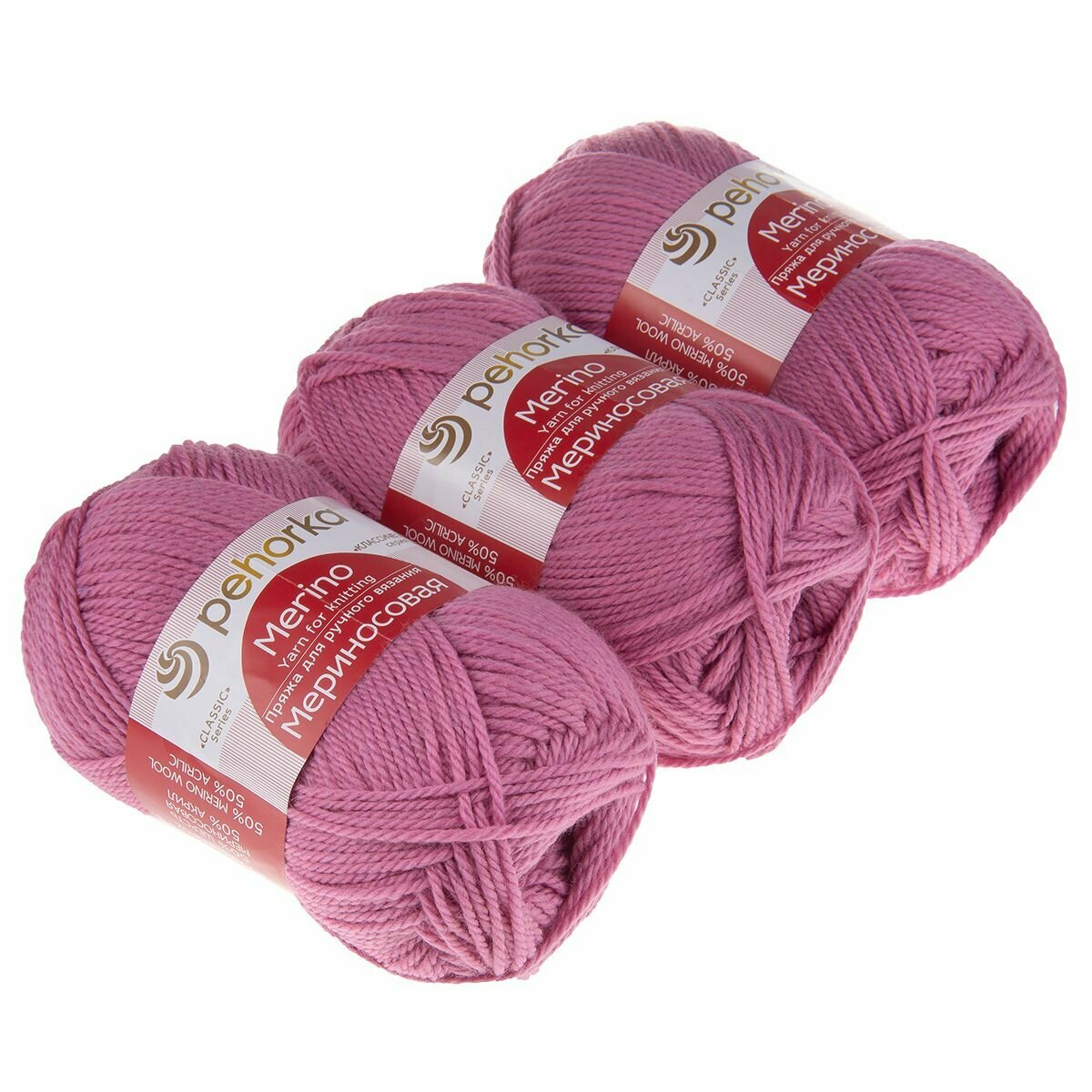 Пряжа Мериносовая (Пехорка), Цикломен - 40, 50% мериносовая шерсть, 50% акрил, 10 мотков, 100 г, 200 м.