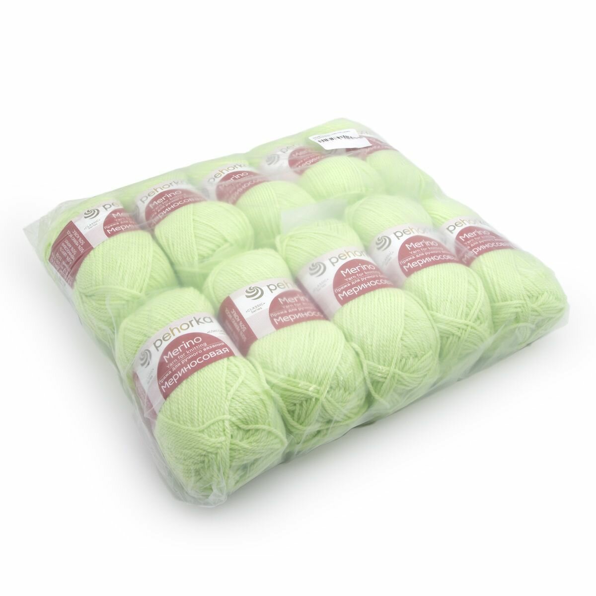 Пряжа для вязания Пехорка 'Мериносовая' 100г, 200м (50% шерсть, 50% акрил) (193 светло-салатовый), 10 мотков