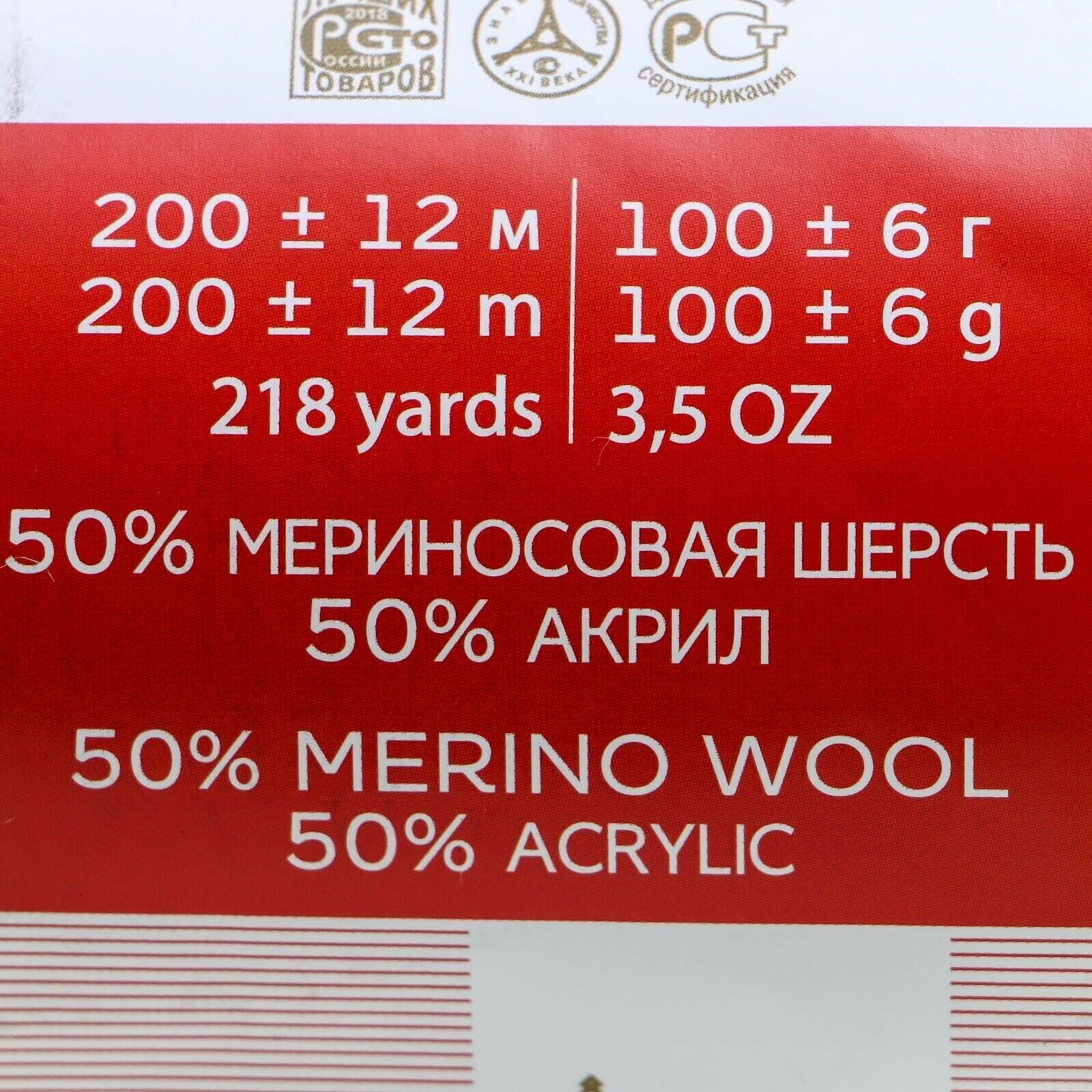 | Состав | 50% мериносовая шерсть / 50% акрил |