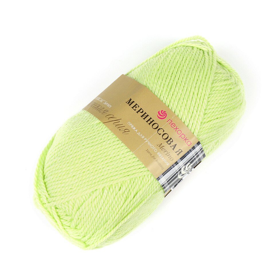Пряжа Пехорка Мериносовая светло-салатовый (193), 50%шерсть мериноса/50%акрил, 200м, 100г, 1шт