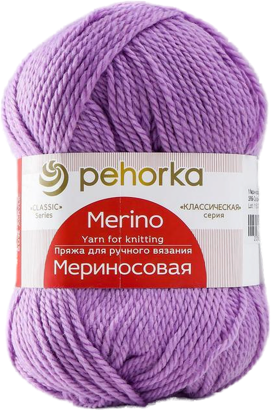 Пряжа Пехорка Мериносовая светлая фиалка (389), 50%шерсть мериноса/50%акрил, 200м, 100г, 1шт