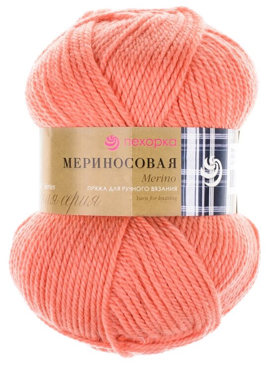 Пряжа Мериносовая (Пехорка), Оранжевый - 284, 50% мериносовая шерсть, 50% акрил, 10 мотков, 100 г., 200 м.