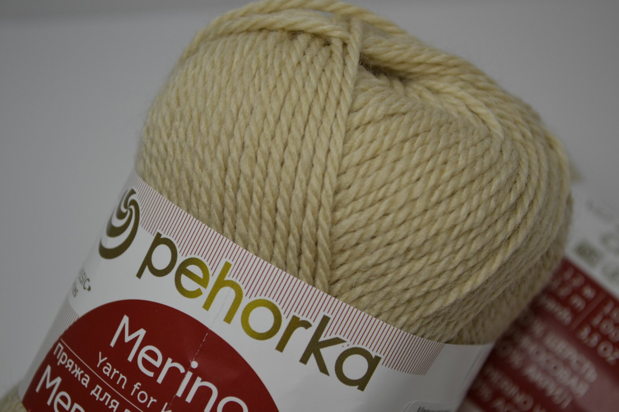 Пряжа Пехорка "Мериносовая" - 1 шт, цвет: 124-Песочный, 200м/100г, 50% мериносовая шерсть, 50% акрил