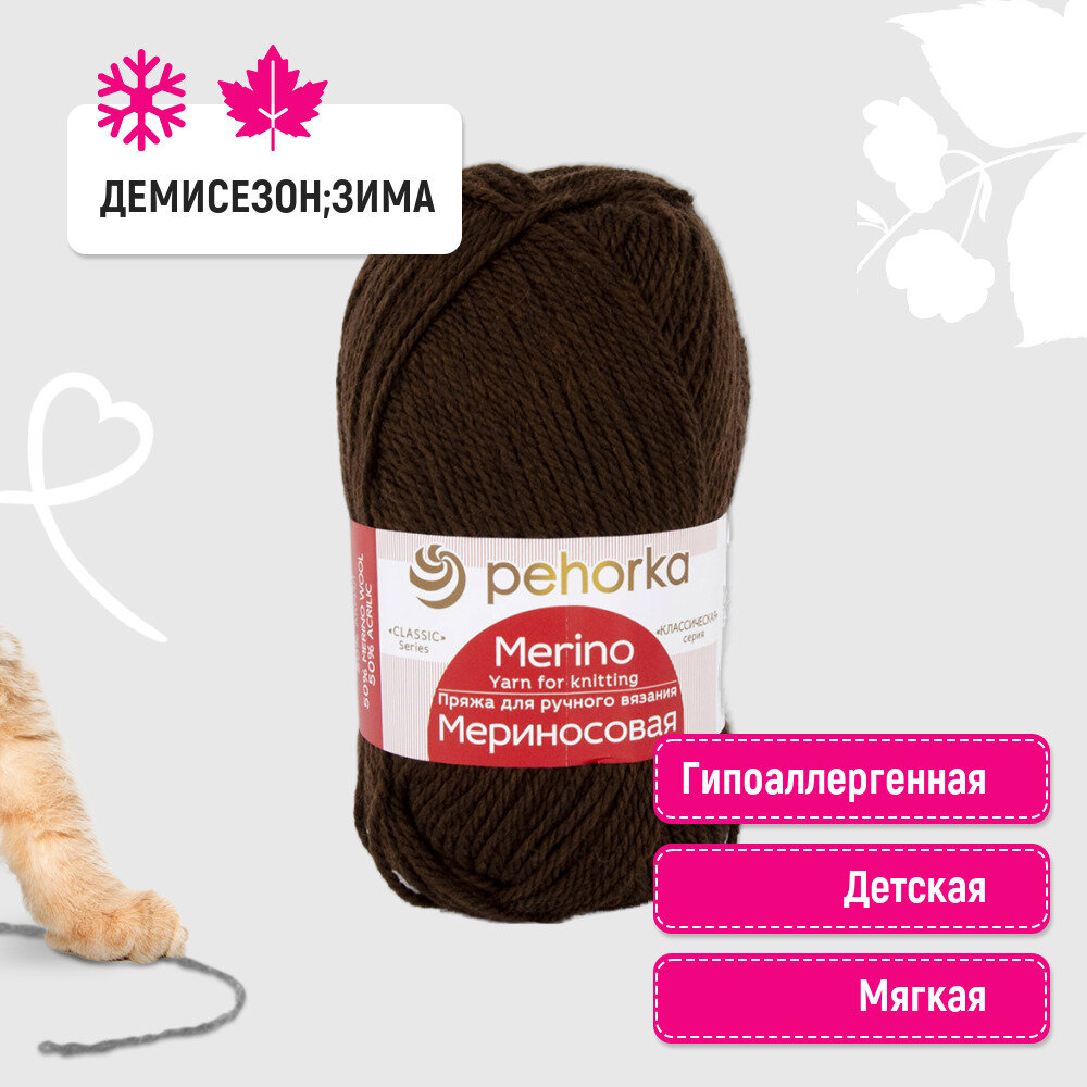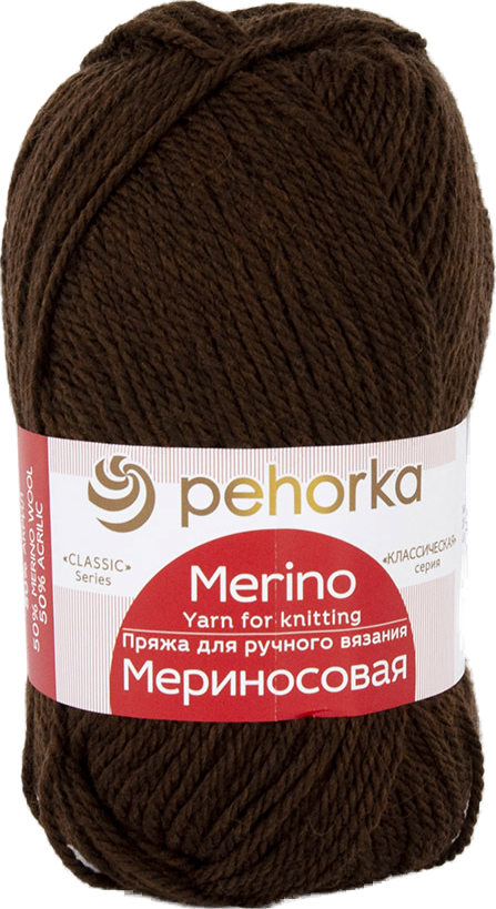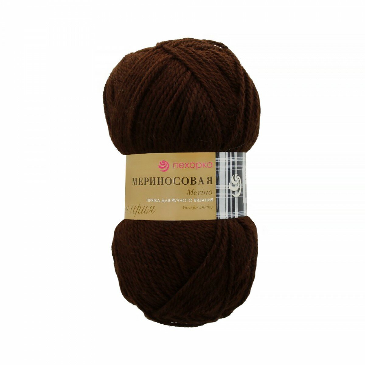 Пряжа Пехорка "Мериносовая" - 1 шт, цвет: 251-Коричневый, 200м/100г, 50% мериносовая шерсть, 50% акрил