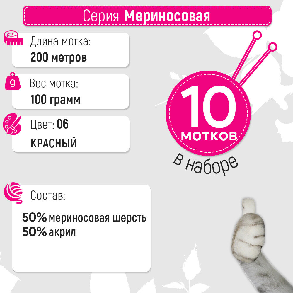 Ниже Вы можете прочитать отзывы на Пряжа для вязания Пехорка 'Мериносовая', 100г, 200м (50% шерсть, 50% акрил) (06 красный), 10 мотков, ознакомится с подробными характеристиками, посмотреть интересные обзоры и фотографии на Пряжа для вязания Пехорка 'Мериносовая', 100г, 200м (50% шерсть, 50% акрил) (06 красный), 10 мотков.