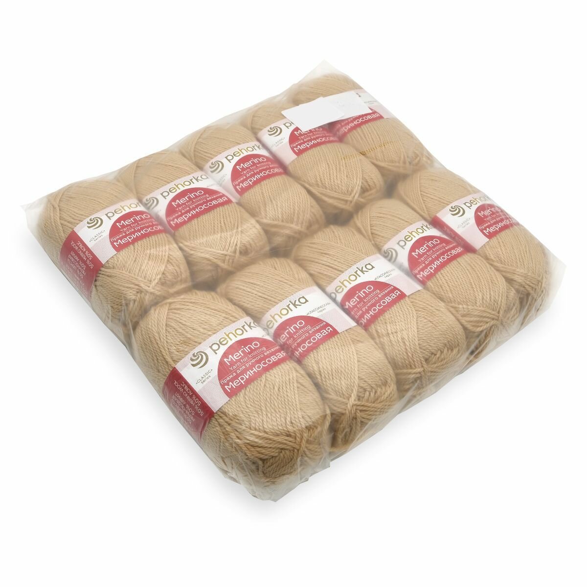 Пряжа для вязания Пехорка 'Мериносовая' 100г, 200м (50% шерсть, 50% акрил) (124 песочный), 10 мотков
