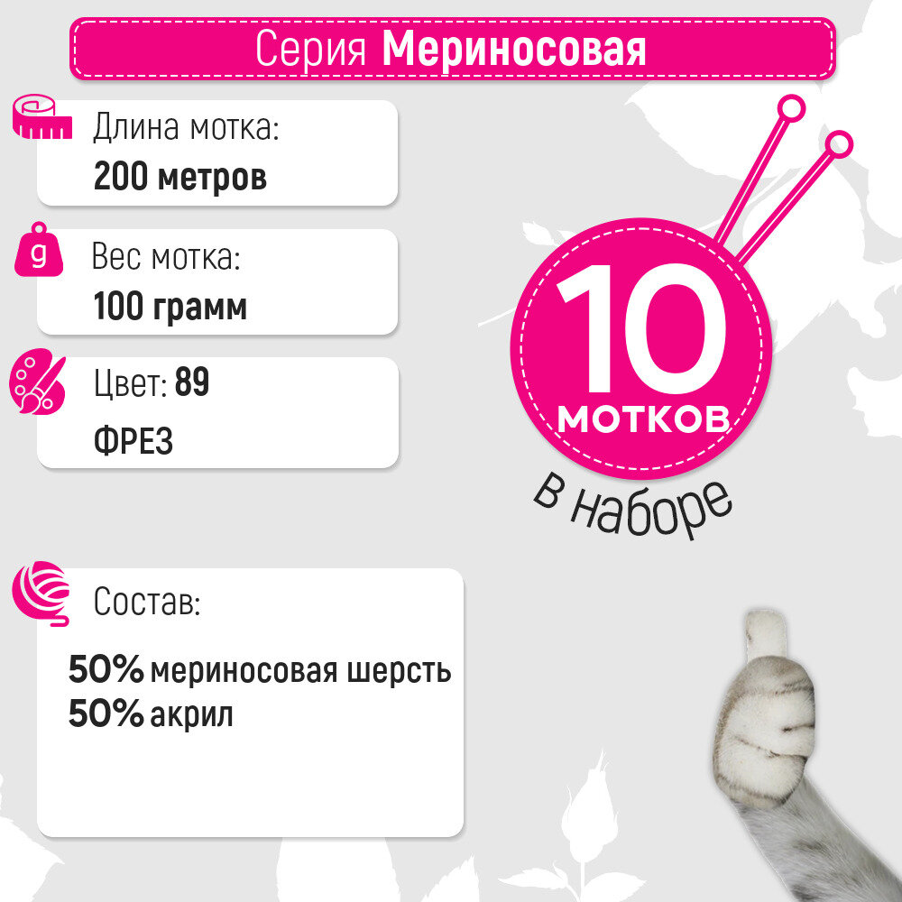Ниже Вы можете прочитать отзывы на Пряжа для вязания Пехорка 'Мериносовая', 100г, 200м (50% шерсть, 50% акрил) (89 фрез), 10 мотков, ознакомится с подробными характеристиками, посмотреть интересные обзоры и фотографии на Пряжа для вязания Пехорка 'Мериносовая', 100г, 200м (50% шерсть, 50% акрил) (89 фрез), 10 мотков.