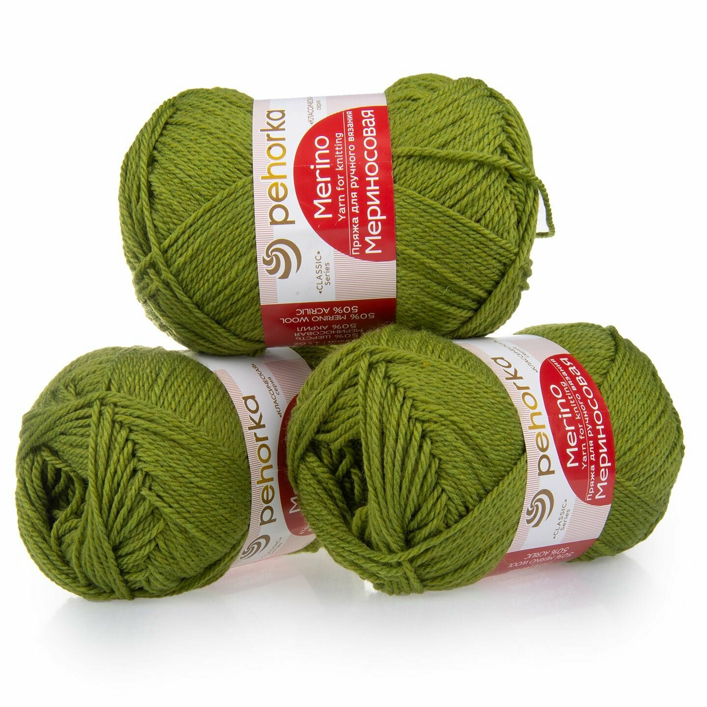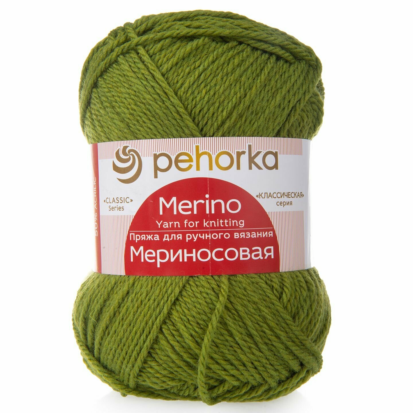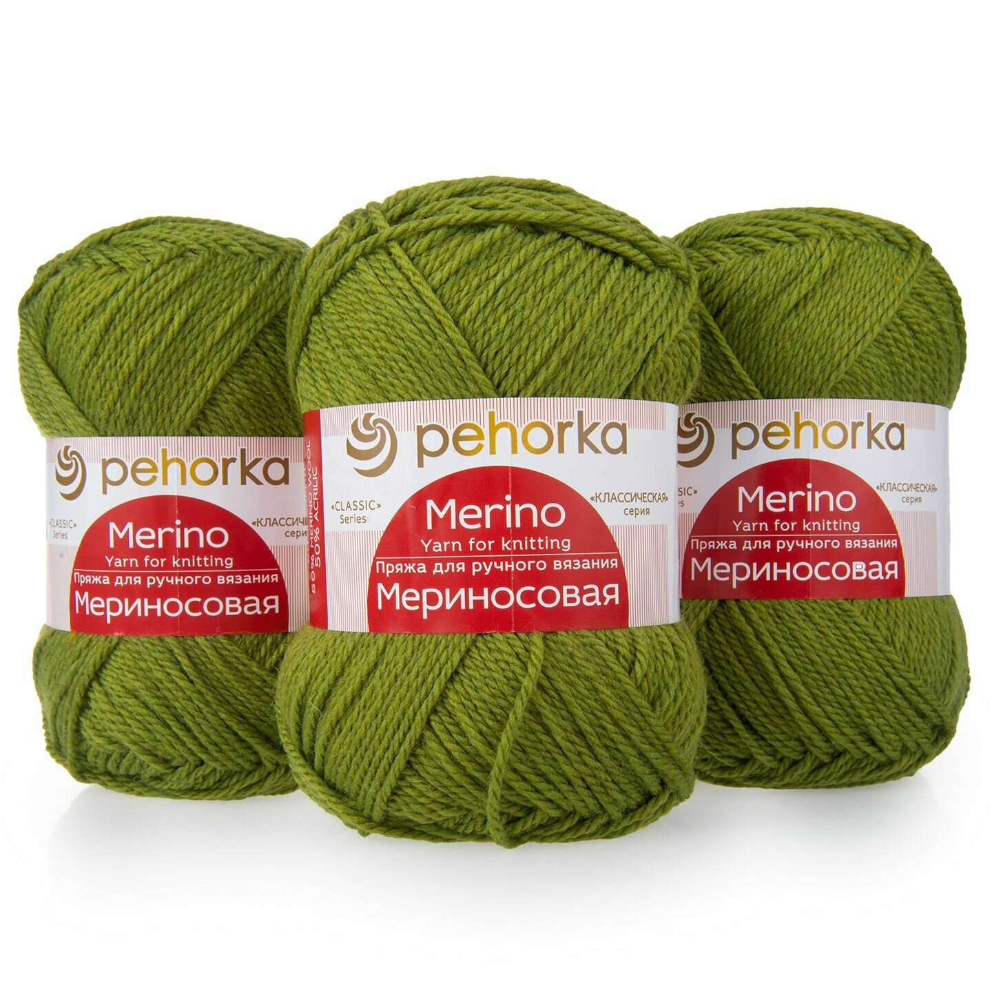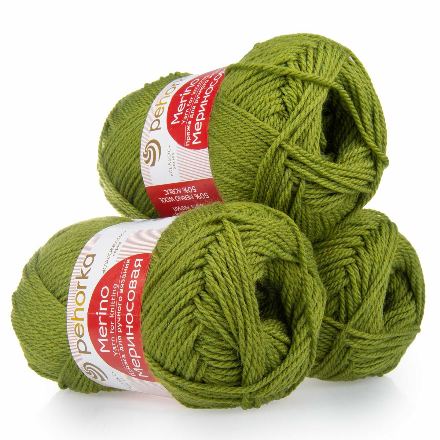 Пряжа Пехорка "Мериносовая" - 1 шт, цвет: 252-Зеленый горошек, 200м/100г, 50% мериносовая шерсть, 50% акрил